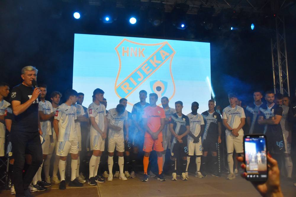 U pozitivnim emocijama nabijenoj atmosferi skandiralo se riječkim nogometnim herojima, koji su se pozornicom prošetali u novim garniturama dresova s potpisom poznatog svjetskog dizajnera Juraja Zigmana.